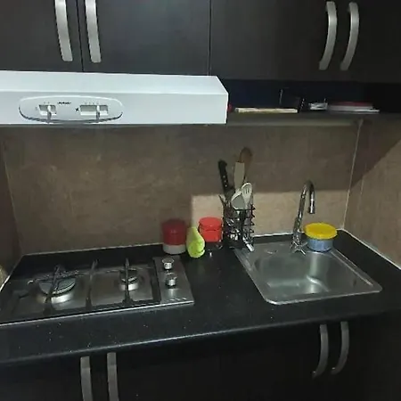 With a writing desk, R.1108 Lindo Aparta Estudio Equipado Tipo Ejecutivo. Apartment offers amenities such as a flat-screen TV with satellite channels, an iron and ironing board, and comforts like climate control. This property offers guests the convenient feature of towels in the bathroom.